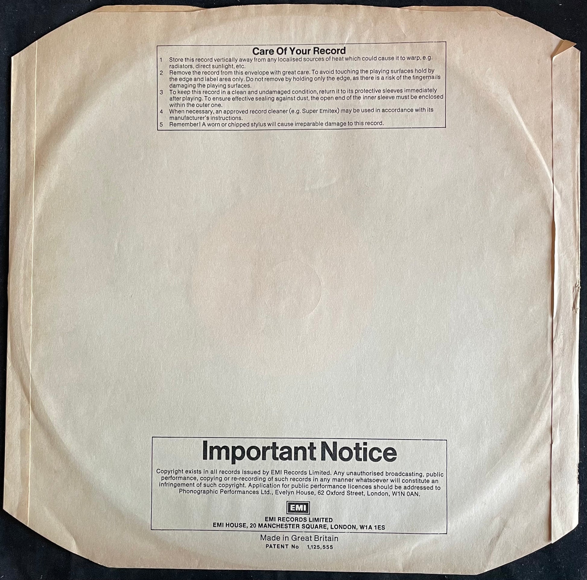 | Very Good (VG) | The record has obviously been played many times, but displays no major deterioration in sound quality, despite noticeable surface marks and the occasional light scratch. Normal wear and tear on the cover or extra items, without any major defects is acceptable |
