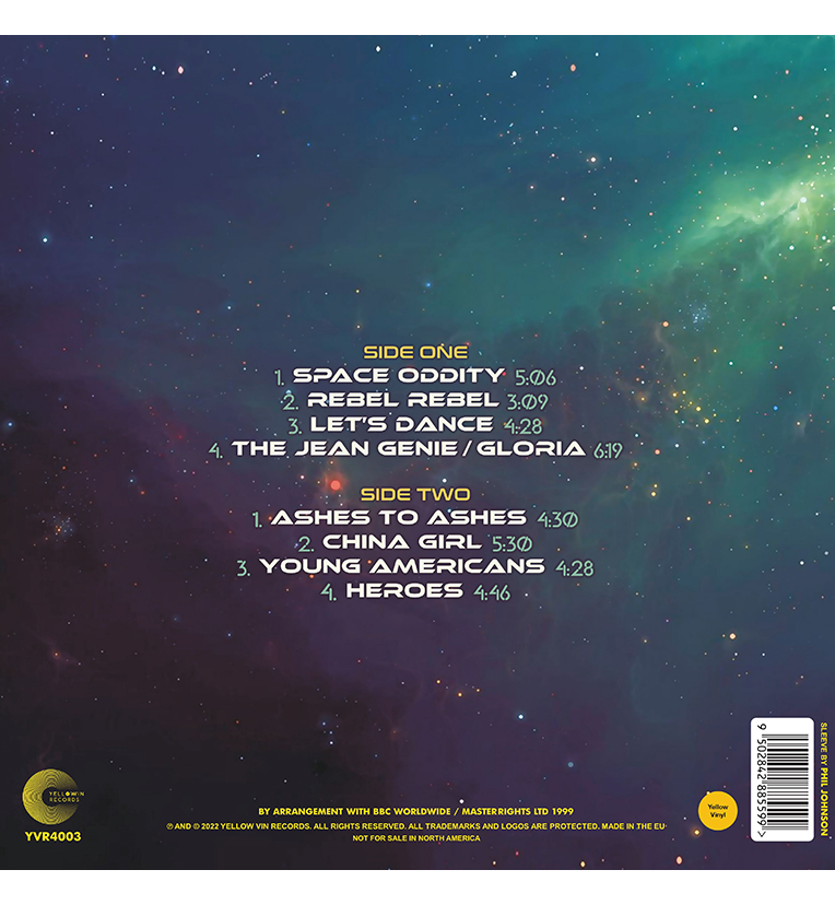 Featured here, are stunning renditions of Bowie classics such as “Heroes”, Space Oddity, Ashes to Ashes, Let’s Dance, Rebel Rebel, Young Americans and more.